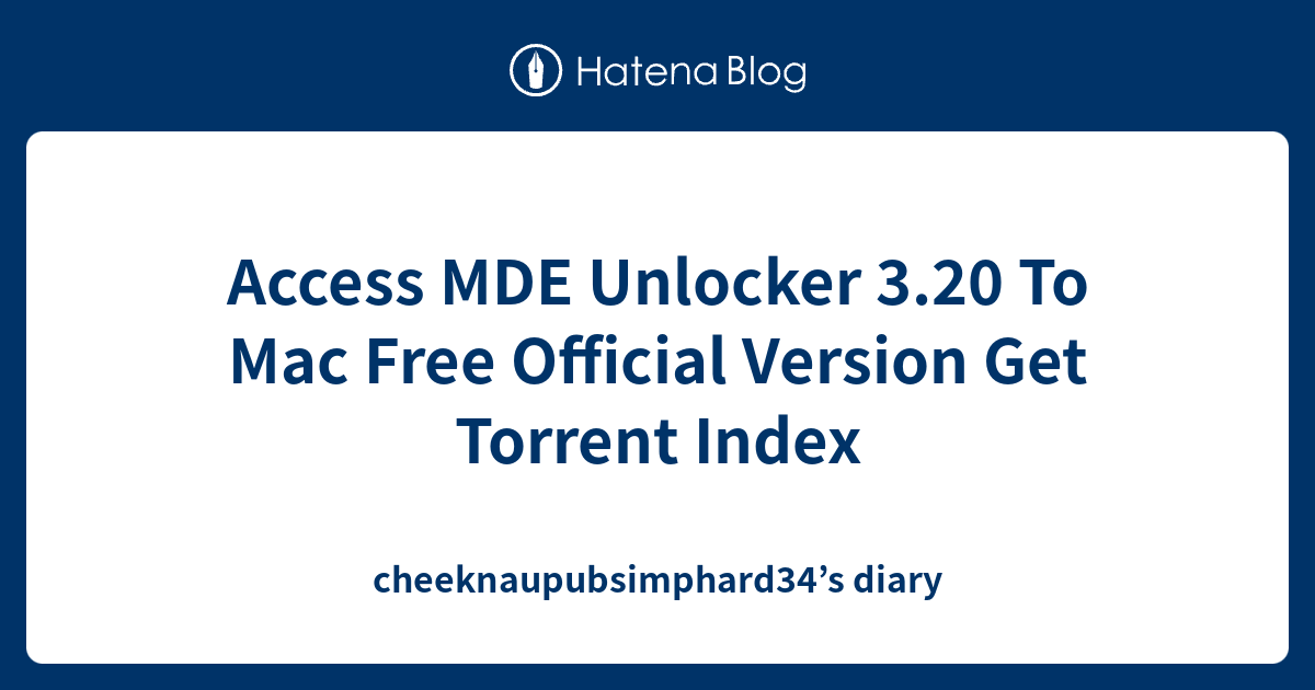 May 26, 2020 · access mde unlocker 3.20 serial in title/summary mde unlocker for microsoft® access this program converts your compiled microsoft access database (.mde) file back into microsoft access database format (.mdb) without the ability to view or edit the original vba code.